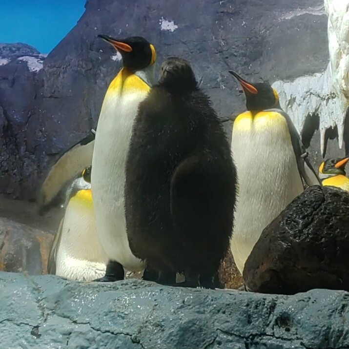 朗報 – キングペンギンのヒナ、すくすく育つ 海遊館にて