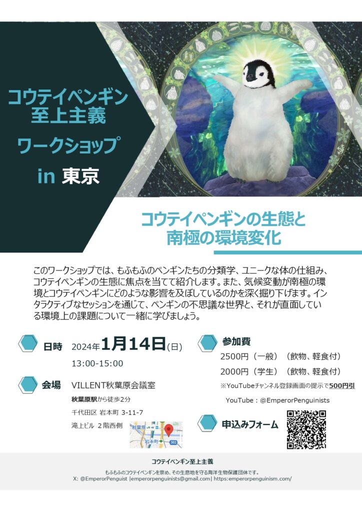 このワークショップでは、もふもふのペンギンたちの分類学、ユニークな体の仕組み、コウテイペンギンの生態に焦点を当てて紹介します。また、気候変動が南極の環境とコウテイペンギンにどのような影響を及ぼしているのかを深く掘り下げます。インタラクティブなセッションを通じて、ペンギンの不思議な世界と、それが直面している環境上の課題について一緒に学びましょう。